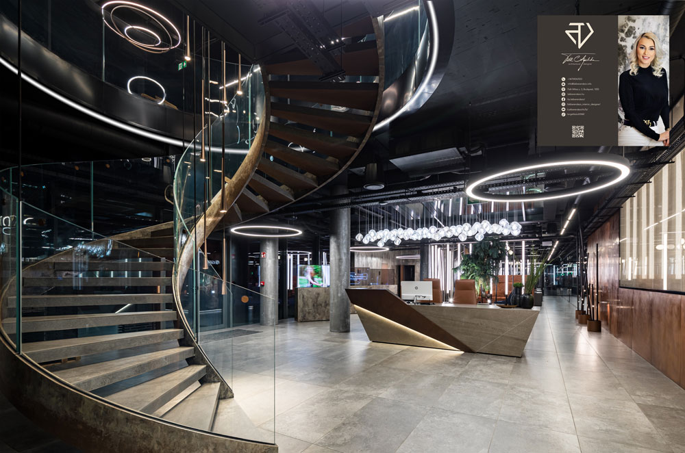 Például a GREE Irodaház Szarvas projektje nemzetközi díjat nyert: egy high-tech irodaépület belső tere, ahol látható gépészeti elemeket elegáns designnal integrált, egyedi megvilágított oszlopokkal, márvány és sárgaréz elemekkel, valamint bespoke bútorokkal.